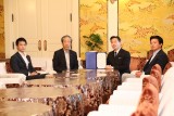 枝野代表はあいさつの冒頭で、相次ぐ災害で被災した方々をお見舞いし、党として被災地の復旧と事業再開に全力で取り組む決意を表明するとともに、自身が経済産業大臣当時に総合資源エネルギー調査会会長として困難のなか政策取りまとめに当たった三村会長にお礼の言葉を述べました。経済政策については、日商の早期景気観測調査で小規模事業者の減少や地方での廃業の増加と都市圏への人口流入、人手不足関連倒産が深刻化しているとの現状を指摘し、解決のためには都市部にばかり目を向け強い者をより強くして経済をけん引する経済政策から、地方自身のボトムアップをはかる経済政策への転換が重要だと訴えました。中西経団連会長が言及した就活ルールの廃止は、人手不足が深刻な中小企業をルールなき人材獲得競争にさらすことになると指摘し、状況を注視し皆さんの意見を伺いながら党としてしっかり対応していきたいと述べました。結党からまもなく1年を迎える立憲民主党として、全国各地で商工会議所の皆さんと意見交換を進め、草の根から地域経済を支える政策を立案していきたいと今後の交流強化を呼びかけました。